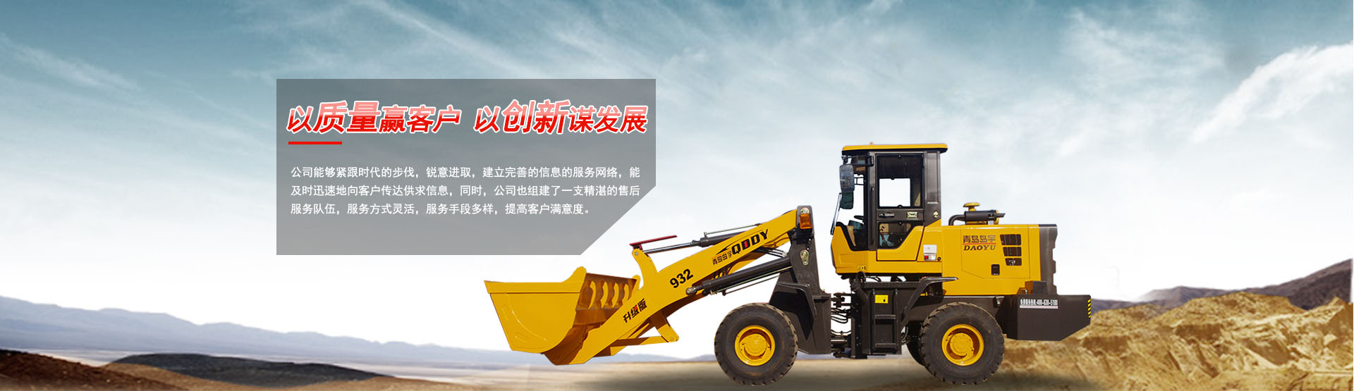 關(guān)于島宇青島島宇機(jī)械有限公司是一家專業(yè)致力于研發(fā)、生產(chǎn)、銷售工程機(jī)械、農(nóng)用機(jī)械等專業(yè)裝備的現(xiàn)代化公司,公司建立了質(zhì)量管理體制,堅(jiān)持誠(chéng)實(shí)守信原則。在長(zhǎng)期的經(jīng)營(yíng)過(guò)程中,形成了公司的企業(yè)文化,公司員工目標(biāo)明確,團(tuán)結(jié)協(xié)作,高效務(wù)實(shí),開(kāi)拓進(jìn)取,在實(shí)現(xiàn)公司目標(biāo)的同時(shí),也使自我價(jià)值得到了體現(xiàn)。公司始終把質(zhì)量作為企業(yè)的生命,注重科技開(kāi)發(fā)與創(chuàng)新,同時(shí)注重行業(yè)技術(shù)的交流與合作。